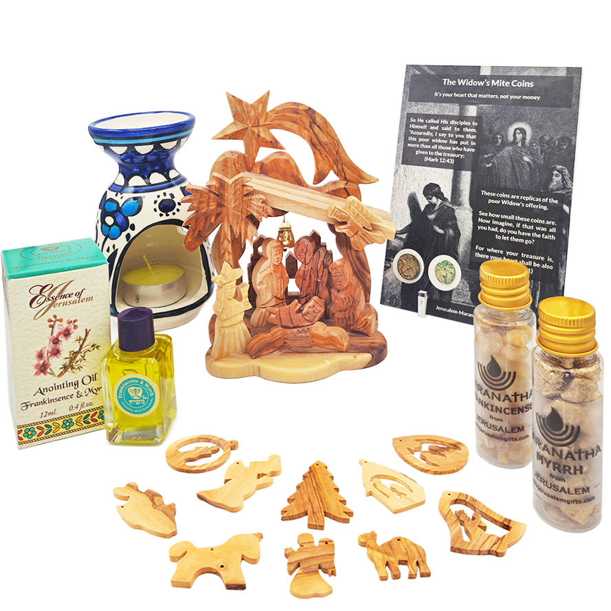 An educational replica widow’s mite coins display completes the collection. All items are made in Israel and shipped from Jerusalem in a golden gift bag. Gifts for the King highlights reverence, beauty, and meaningful faith this Christmas.
