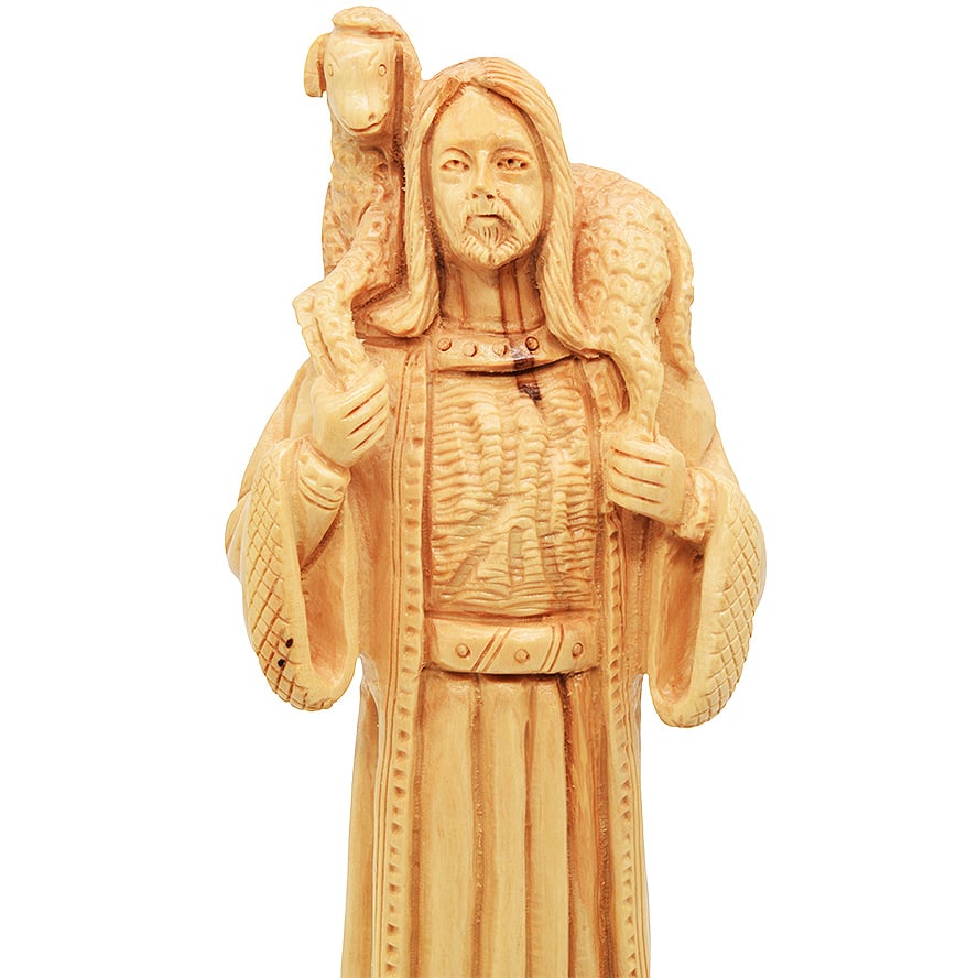 The Good Shepherd: A Handcrafted Olive Wood Jesus Statue from Israel